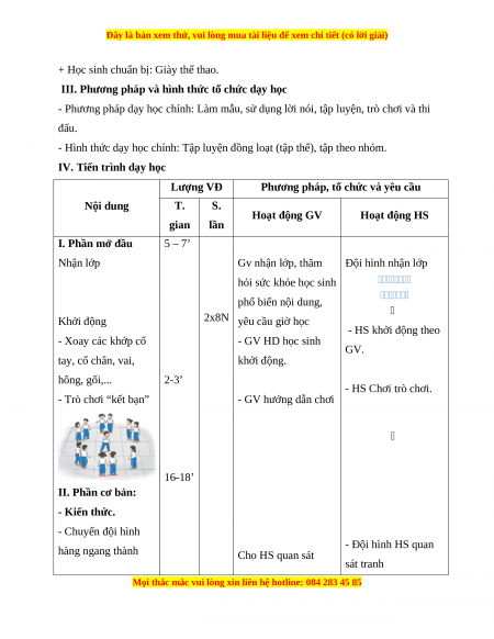 - Phương pháp dạy học chính: Làm mẫu, sử dụng lời nói, tập luyện, trò chơi và thi đấu.