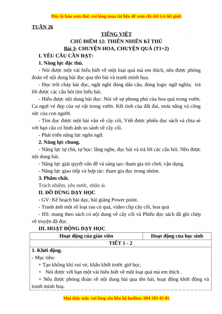 ài 3 : CHUYỆN HOA, CHUYỆN QUẢ (T1+2) I. YÊU CẦU CẦN ĐẠT: 1. Năng lực đặc thù.