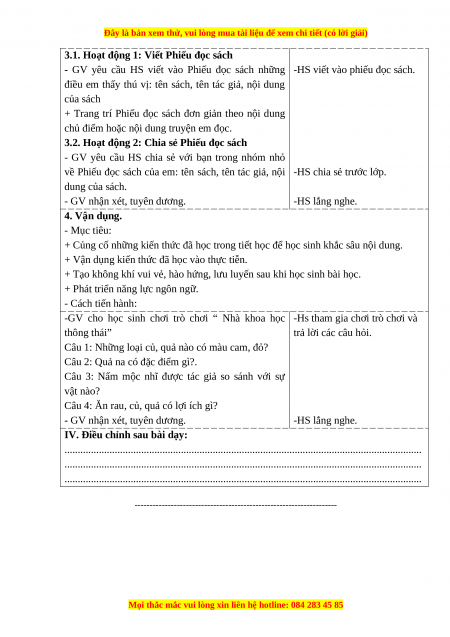 3.2. Hoạt động 2: Chia sẻ Phiếu đọc sách