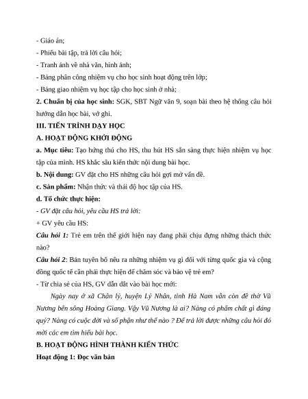 Giáo án Chuyện người con gái Nam Xương Ngữ Văn 9 Chân trời sáng tạo