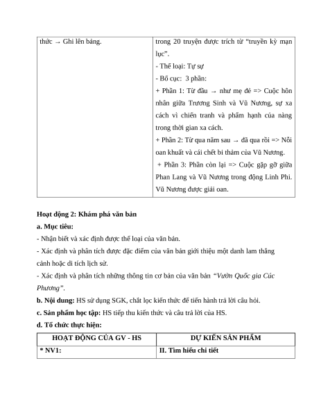 - Xác định và phân tích được đặc điểm của văn bản giới thiệu một danh lam thắng