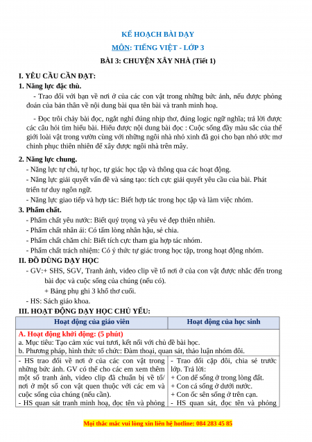 BÀI 3: CHUYỆN XÂY NHÀ (Tiết 1) I. YÊU CẦU CẦN ĐẠT: