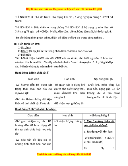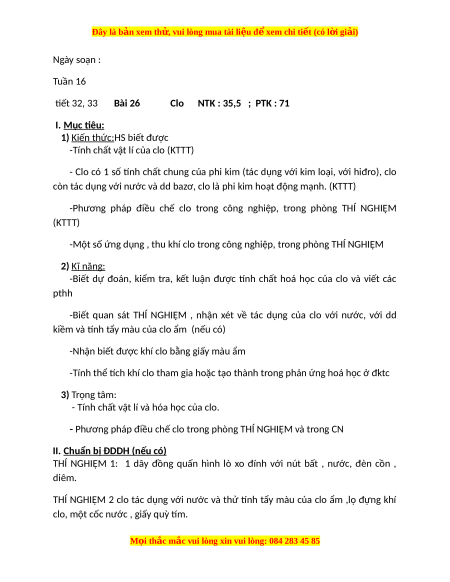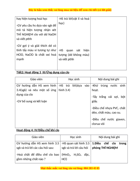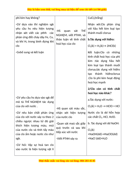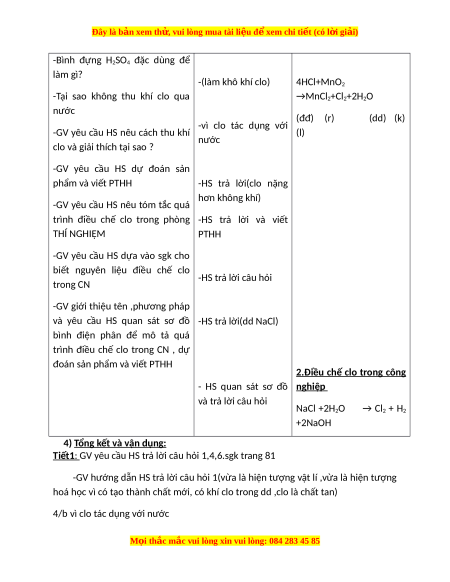 Giáo án Clo Hóa học 9