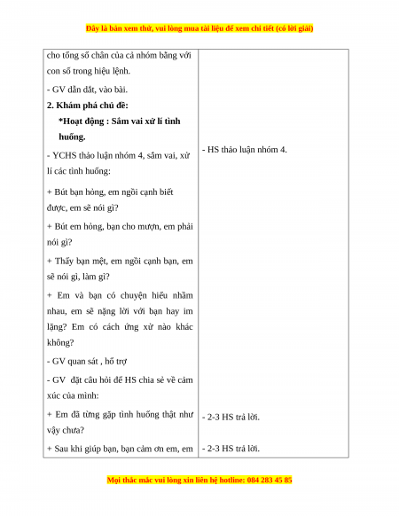 - YCHS thảo luận nhóm 4, sắm vai, xử lí các tình huống:
