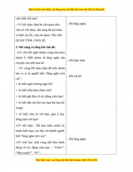 - HS tập trung lắng nghe và biết cách bày tỏ sự cổ vũ, ủng hộ để bạn nói.
