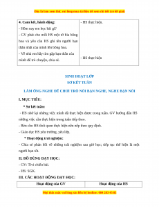 mình để trò chuyện, chia sẻ. SINH HOẠT LỚP SƠ KẾT TUẦN