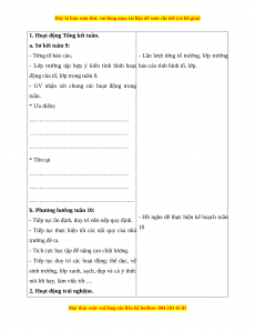 - Tiếp tục duy trì các hoạt động: thể dục, vệ
