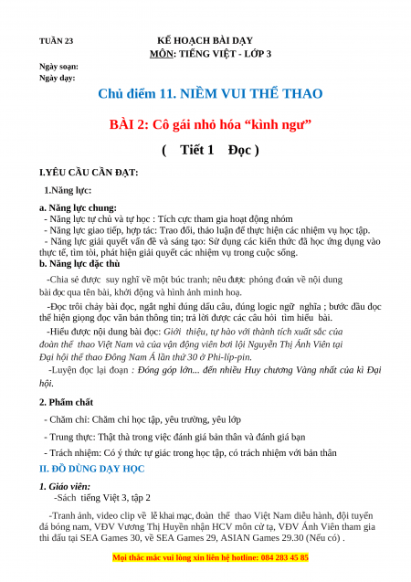 MÔN: TIẾNG VIỆT - LỚP 3 Ngày soạn: Ngày dạy: