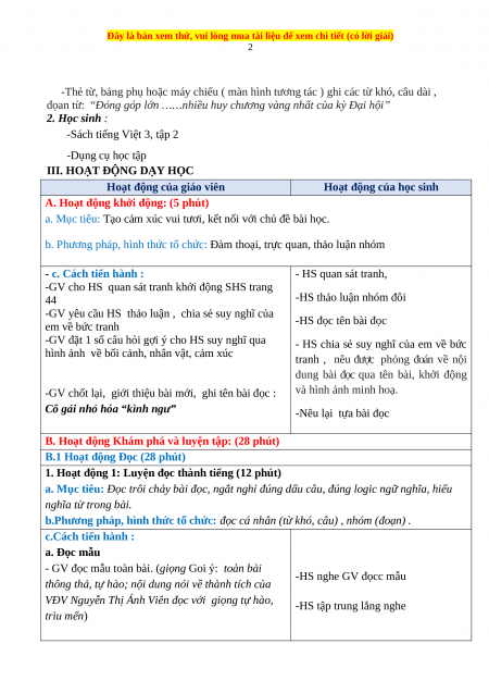 b.Phương pháp,hình thức tổ chức: thực hành, vấn đáp, thảo luận nhóm, cá nhân , … c.Cách tiến hành: