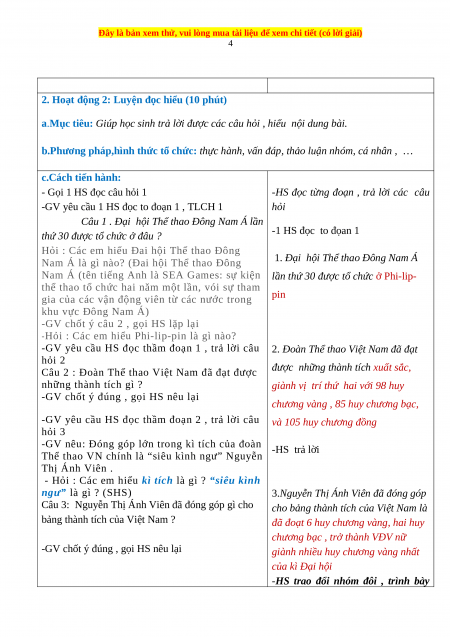 2. Hoạt động 2: Luyện đọc hiểu (10 phút)