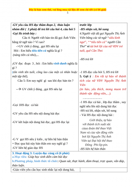 VÐV Nguyễn Thị Ánh Viên đọc với giọng tự hào, -HS tập trung lắng nghe trìu mến)