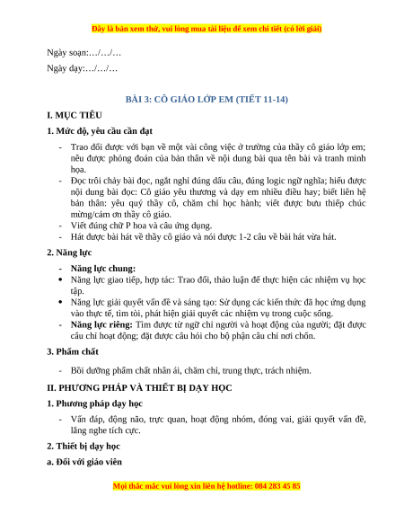 BÀI 3: CÔ GIÁO LỚP EM (TIẾT 11-14) I. MỤC TIÊU
