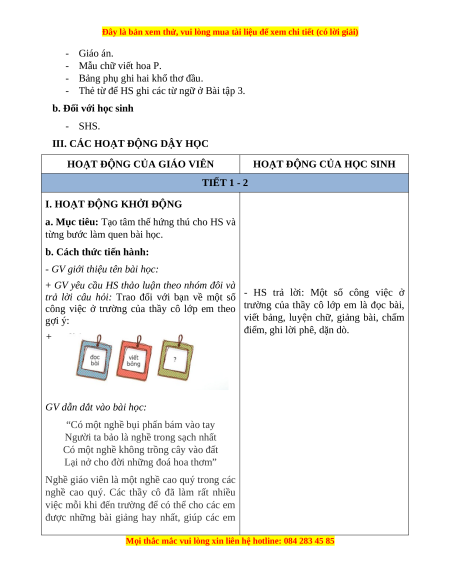 III. CÁC HOẠT ĐỘNG DẬY HỌC