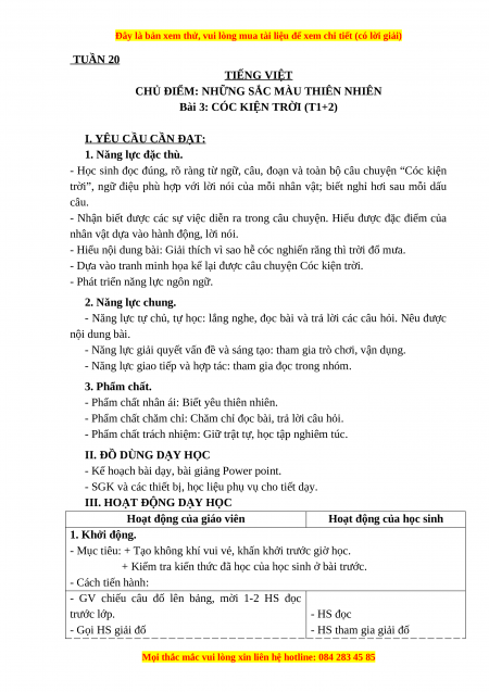 Bài 3: CÓC KIỆN TRỜI (T1+2) I. YÊU CẦU CẦN ĐẠT: