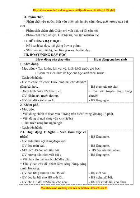+ Viết đúng chính tả đoạn văn “Trăng trên biển” trong khoảng 15 phút.