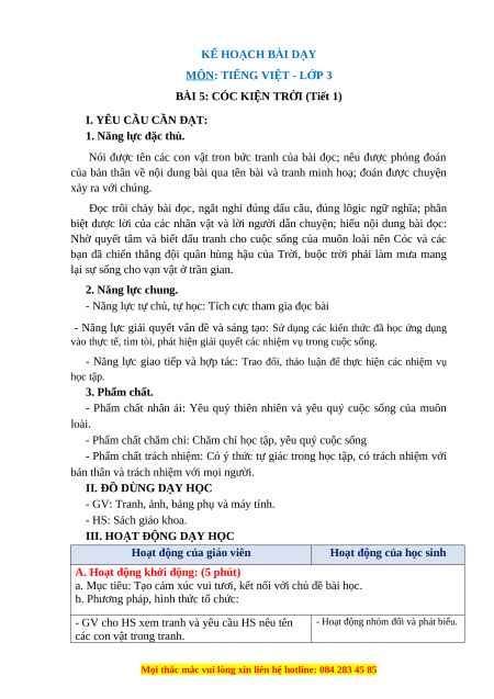 Giáo án Cóc kiện trời Tiếng việt 3 Chân trời sáng tạo