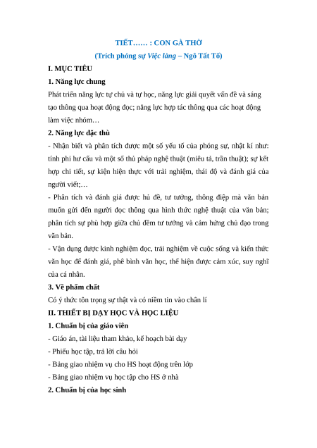 (Trích phóng sự Việc làng – Ngô Tất Tố) I. MỤC TIÊU 1. Năng lực chung