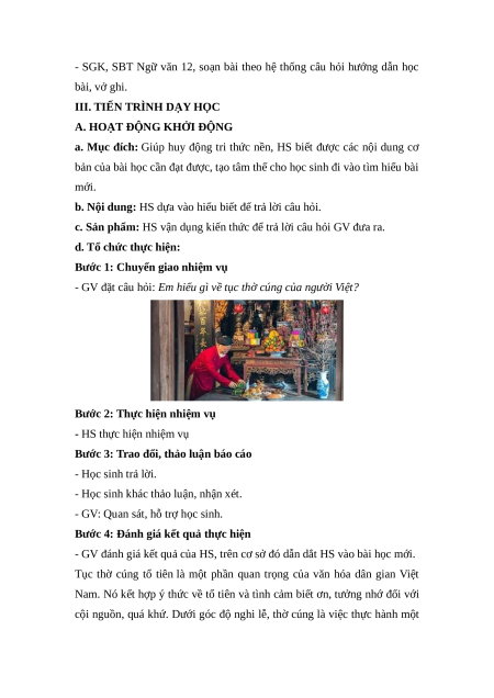 - GV đặt câu hỏi: Em hiểu gì về tục thờ cúng của người Việt?