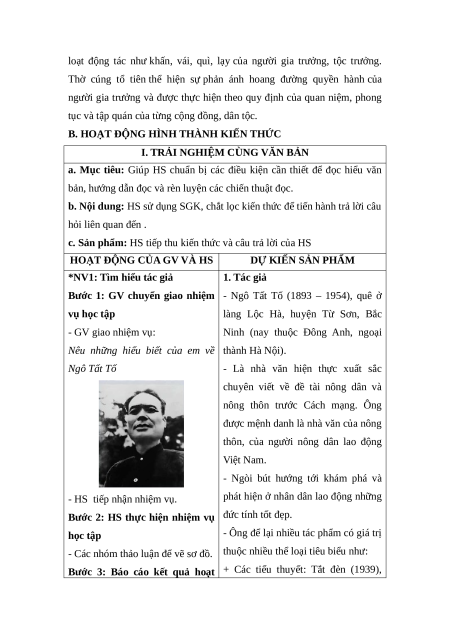 Bước 1: GV chuyển giao nhiệm - Ngô Tất Tố (1893 – 1954), quê ở vụ học tập