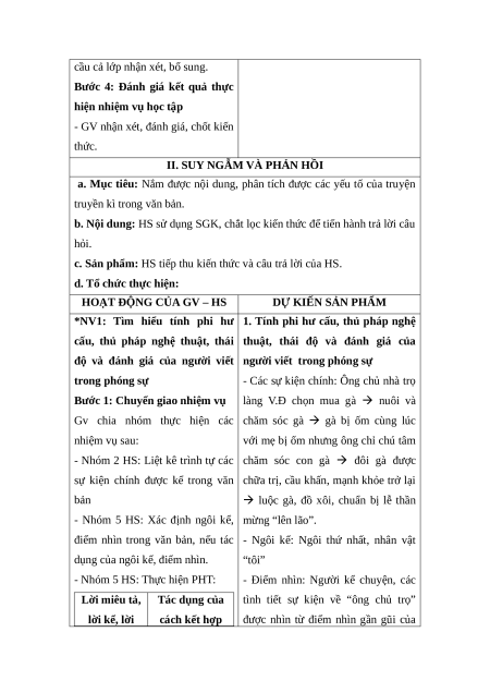 tính phi hư cấu và một số thủ pháp nghệ thuật (miêu tả, trần thuật); sự kết