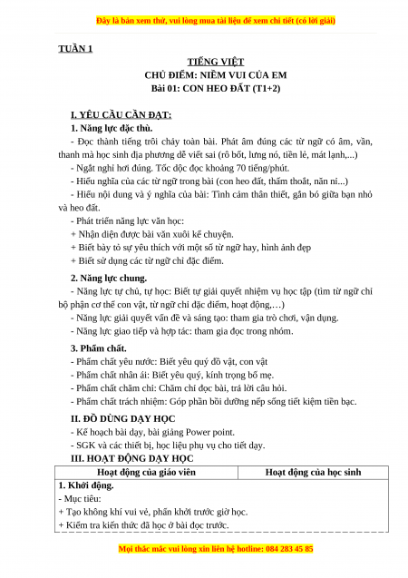 Bài 01: CON HEO ĐẤT (T1+2) I. YÊU CẦU CẦN ĐẠT: 1. Năng lực đặc thù.
