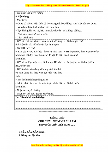 Bài 01: ÔN CHỮ VIẾT HOA: D, Đ