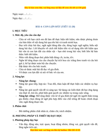 BÀI 4: CON LỢN ĐẤT (TIẾT 15-20) I. MỤC TIÊU