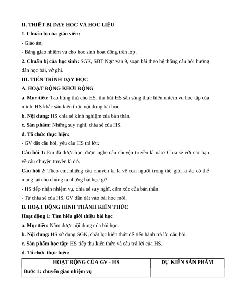 II. THIẾT BỊ DẠY HỌC VÀ HỌC LIỆU