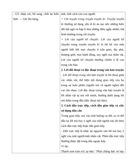 + Cách dẫn trực tiếp, cách dẫn gián + Không gian truyền kì: Trong truyện truyền kì, thế