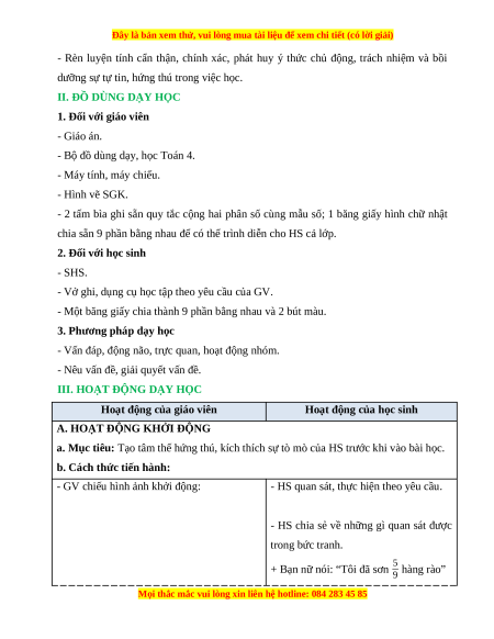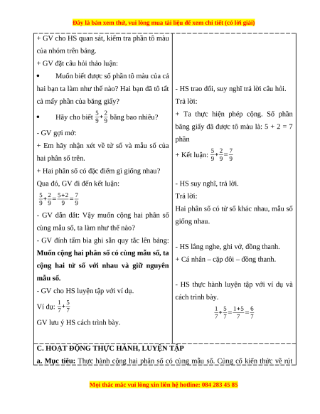 a. Mục tiêu: Biết cộng hai phân số có cùng mẫu số.
