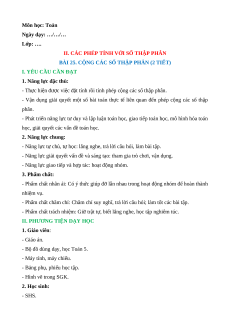 BÀI 25. CỘNG CÁC SỐ THẬP PHÂN (2 TIẾT)
