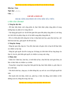 - Vận dụng giải quyết các vấn đề đơn giản liên quan đến phép cộng phân số, mở rộng