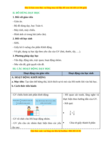 III. CÁC HOẠT ĐỘNG DẠY HỌC