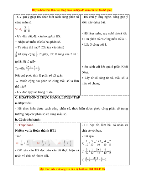 - HS thực hiện được cách cộng phân số, thực hiện được phép cộng phân số trong
