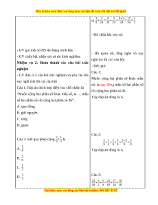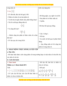 - HS thực hiện được cách cộng phân số trong trường hợp có một mẫu số chia hết cho các mẫu số còn lại. b. Cách tiến hành: 1. Thực hành