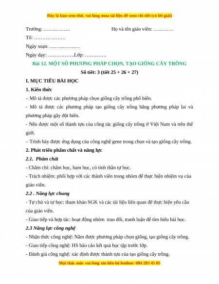 - Nhận thức công nghệ: Nắm được phương pháp chọn giống, tạo giống cây trồng.
