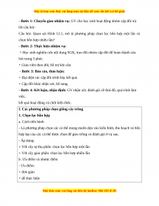 Câu hỏi: Trình bày vai trò của giống cây trồng? 3. Tiến trình