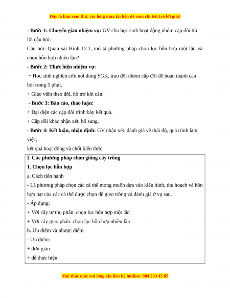 Giáo án Công nghệ 10 (Kết nối tri thức) Bài 12: Một số phương pháp chọn, tạo giống cây trồng
