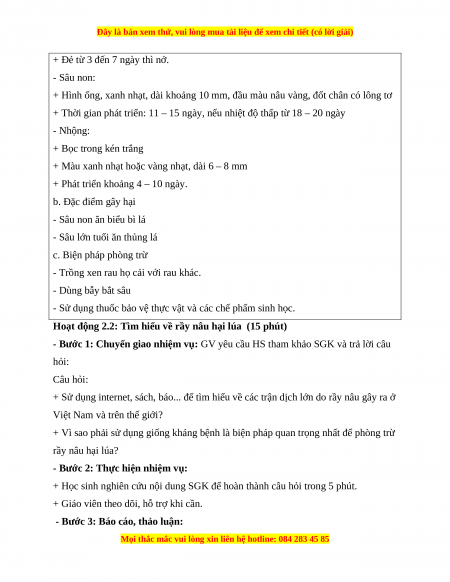 Hoạt động 2.2: Tìm hiểu về rầy nâu hại lúa (15 phút)