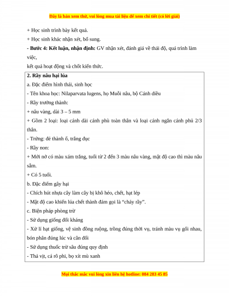- Nhận thức công nghệ: biết đặc điểm sâu hại và biện pháp phòng trừ.