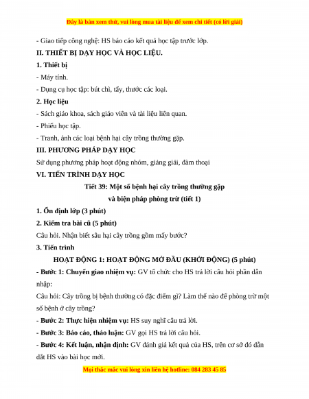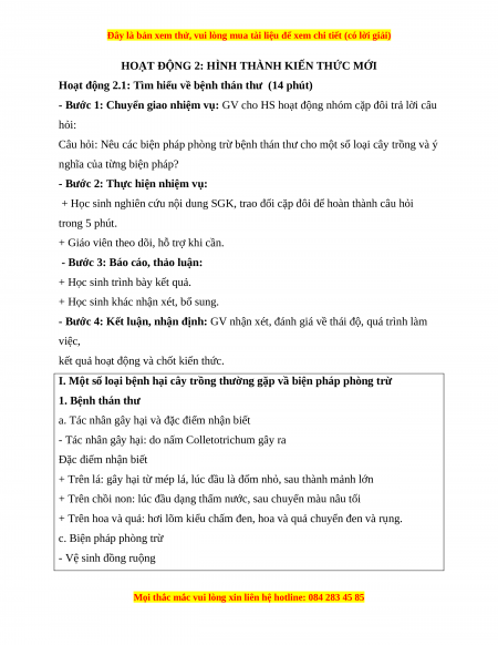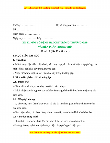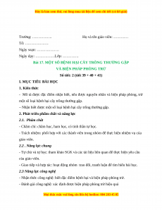 Giáo án Công nghệ 10 (Kết nối tri thức) Bài 17: Một số bệnh hại cây trồng thường gặp và biện pháp phòng trừ