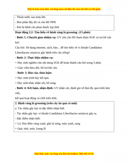Hoạt động 2.2: Tìm hiểu về bệnh vàng lá greening (15 phút)