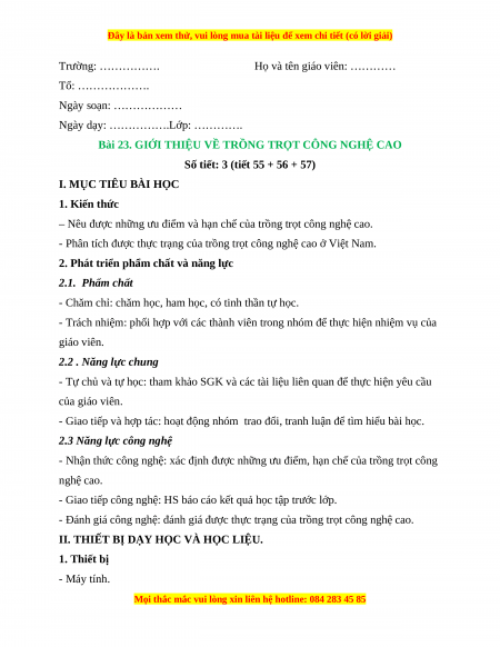 Bài 23. GIỚI THIỆU VỀ TRỒNG TRỌT CÔNG NGHỆ CAO