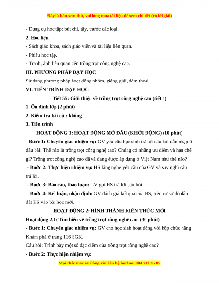 Tiết 55: Giới thiệu về trồng trọt công nghệ cao (tiết 1)