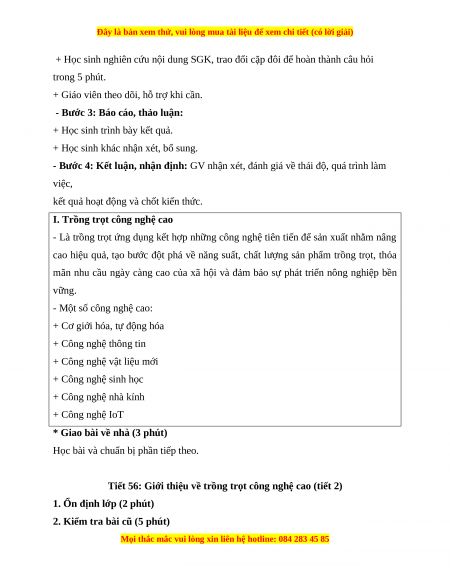 Tiết 56: Giới thiệu về trồng trọt công nghệ cao (tiết 2)
