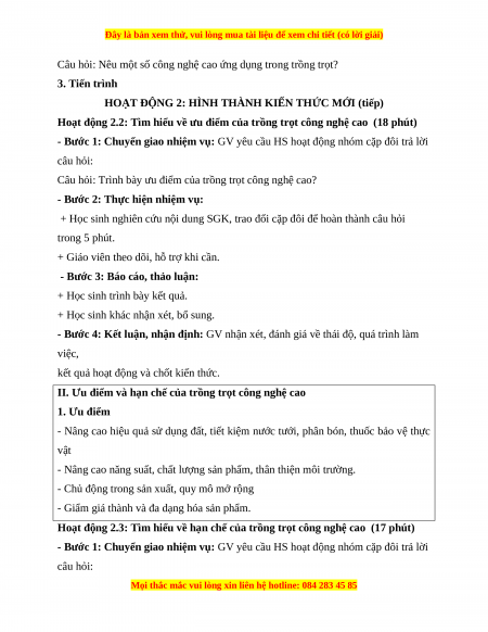 đầu bài: Thế nào là trồng trọt công nghệ cao? Chúng có những ưu điểm và hạn chế