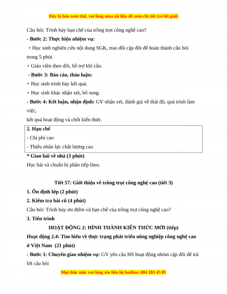Tiết 57: Giới thiệu về trồng trọt công nghệ cao (tiết 3)