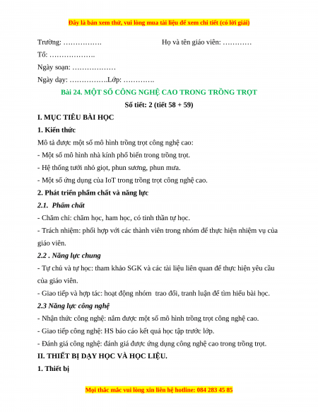 Bài 24. MỘT SỐ CÔNG NGHỆ CAO TRONG TRỒNG TRỌT