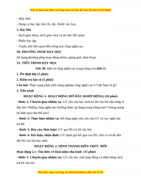 Tiết 58: Một số công nghệ cao trong trồng trọt (tiết 1)