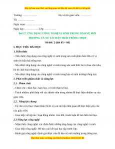 Giáo án Công nghệ 10 (Kết nối tri thức) Bài 27: Ứng dụng công nghệ vi sinh trong bảo vệ môi trường và xử lí chất thải trồng trọt